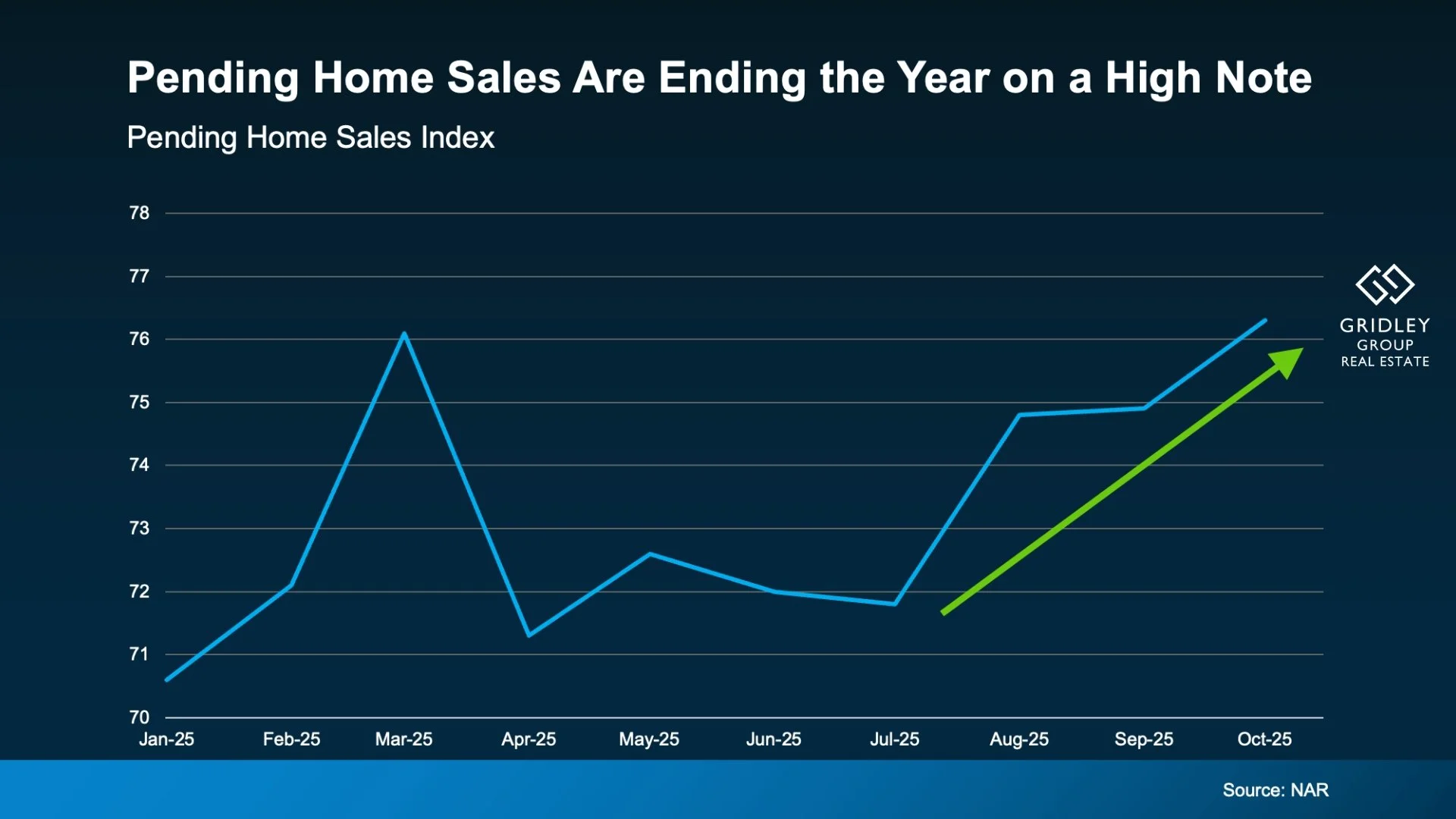 Pending home sales are rising, and that matters. Homes under contract today typically close within one to two months. When pending sales increase, it often signals stronger closed sales ahead.
